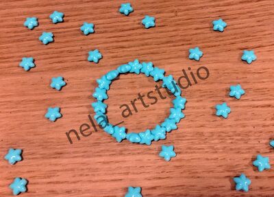 Acrylic star-shaped beads 5 x 6 mm + elastic Lycra 0.8 mm (flexible stringing material), hole size approx. 1.8 mm.