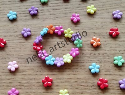 Material: acrylic, faceted beads in the shape of a flower 14x13x4mm + elastic lycra 0,8mm (elastic stringing material), thread approx. 1,8mm.